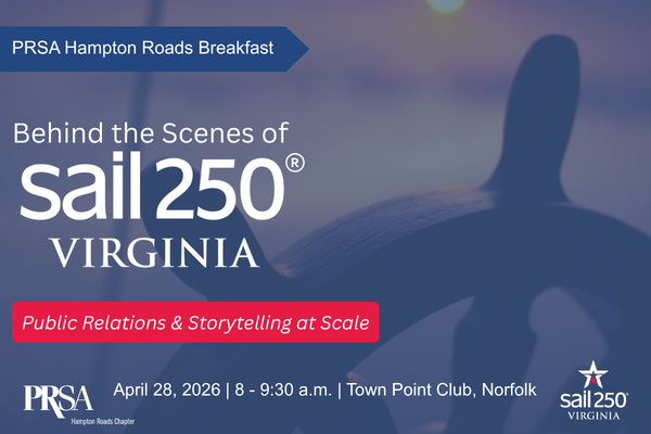 Join PRSA Hampton Roads for a breakfast panel presentation featuring a behind-the-scenes look at the public relations activities behind Sail250® Virginia, one of the region’s most high-profile and complex special events.